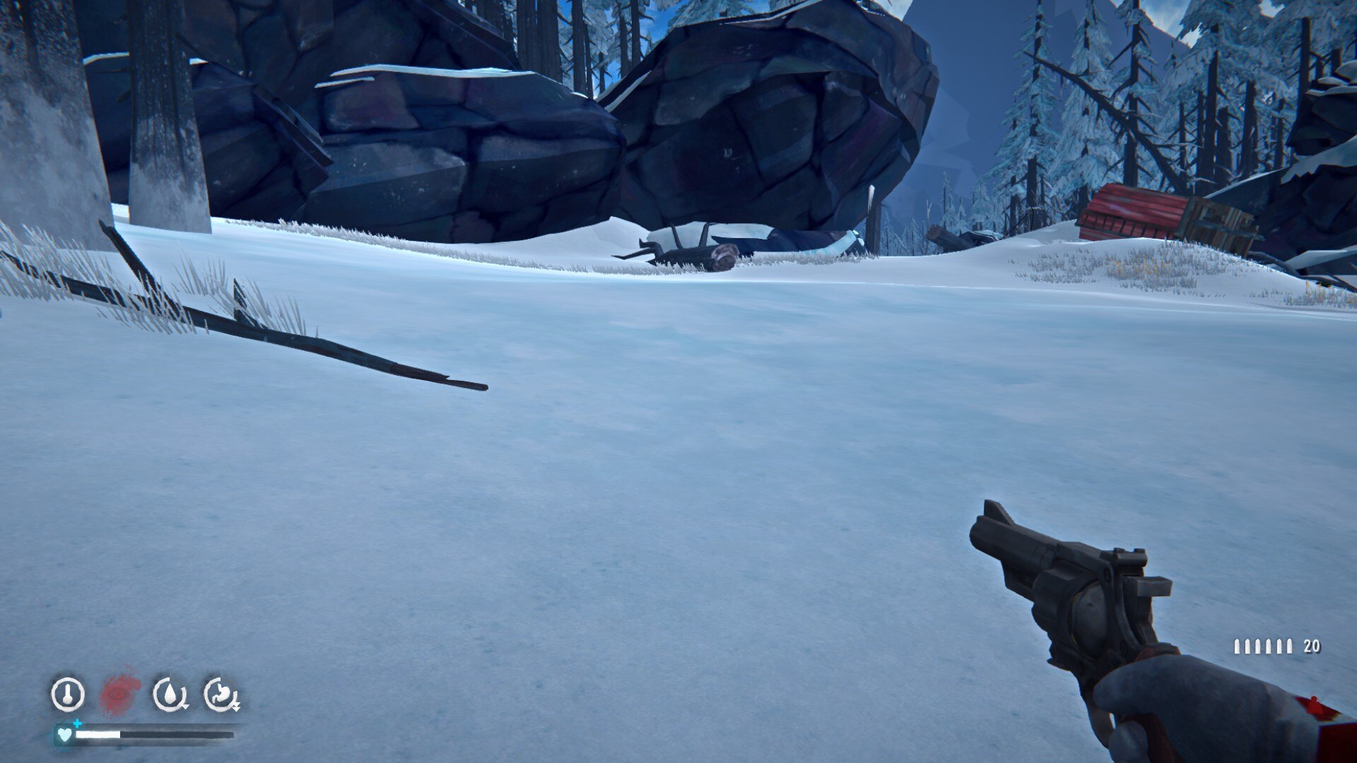 Atâtea paragrafe am și nu am zis nimic de gameplay. Jocul e în first-person, lucru care ajută imersiunea desigur. Dintr-un meniu radial accesat rapid de un buton al mouse-ului putem alege una din activitățile de bază, precum băut/mâncat, bandajat, pornit un foc, etc. Vei explora zone frumoase în Marele Nord, o locație fictivă numită Bear Island, undeva în nordul Canadei. Vei învața să vânezi, fie cu un arc improvizat, fie cu un arc făurit de tine, să gătești, să cauți măceșe și ciuperci pentru ceai, să faci foc, și nu în ultimul rând, să fii bun la cusut, că hainele tale se pot deteriora în timp. Iar dacă ești atacat de vreo lighioană, 100% vei avea nevoie de multe petice – și pentru haine, și sub formă de bandaje pentru corpul tău.